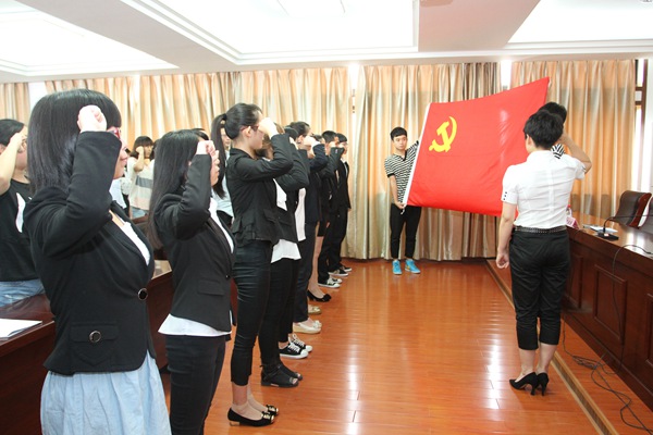 宣誓儀式在慷慨激昂的國際歌聲中正式開始。在市優(yōu)秀黨務(wù)工作者、政治學(xué)院黨總支副書記黃薇的領(lǐng)誓下,100名新黨員緊握右拳,面對(duì)鮮紅的黨旗莊嚴(yán)宣誓,表達(dá)了入黨的愿望和遵守入黨誓詞的決心。