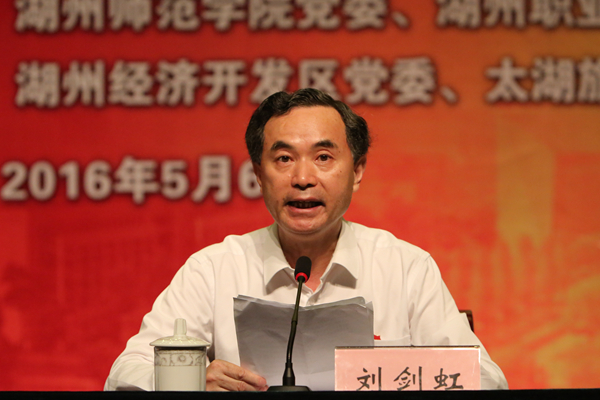 5月6日,湖州市“結對共學共做,攜手共建共進”活動啟動儀式在我校舉行。市委常委、組織部長干武東,湖州職院黨委副書記丁根林,吳興區委常委、組織部長朱劍梁,湖州職院黨委委員、組織部長沈楚,湖州經濟技術開發區管委會副主任郜世通,太湖旅游度假區管委會副書記、副主任沈建軍,我校黨委書記劉劍虹,副書記蔣云良,黨委委員、組織部長何小青出席。市委組織部、吳興區委組織部、湖州經濟技術開發區、太湖旅游度假區和湖州師院、湖州職院相關職能部門的負責人,有關鄉鎮、街道負責人,168個結對的支部書記、黨員代表及所在黨組織的領導參加。啟動儀式由何小青主持。