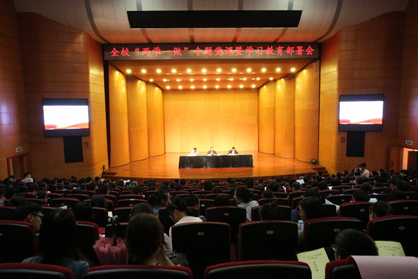 5月11日下午,我校召開“兩學一做”專題黨課暨學習教育部署會。校黨委書記劉劍虹講“兩學一做”專題黨課。校領導班子成員出席,中層以上黨員領導干部、全體黨支部書記、師生黨員代表等參加會議。會議由校長張立欽主持。