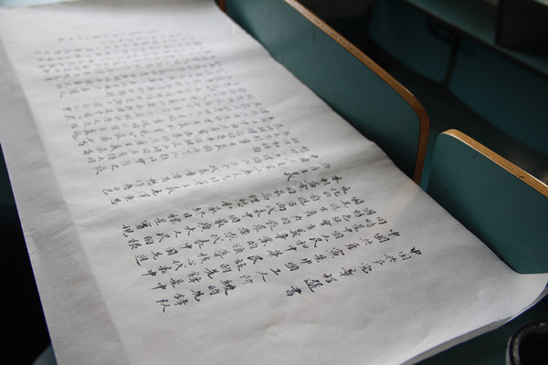比賽現場,參賽者神情專注,或微笑思考,或揮筆一就,或抑揚頓挫。抄寫內容有誓詞,亦有基本路線等。通過借助這一活動,同學們品讀黨章,用傳統書寫來體會字句真意,通過多樣的字體和沉穩的筆畫來體悟黨性。“手抄黨章三筆字比賽不僅是考察大家師范生技能的一項活動,更是激勵學生黨員和入黨積極分子樹立良好黨風,深踐黨性的良方。”入黨積極分子小林如是說。