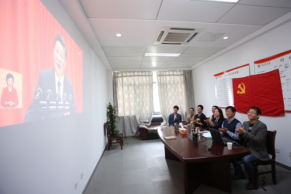 在明達樓,學校黨政領導及機關行政人員心懷喜悅,認真聽取了習近平總書記作的報告,一同回顧了過去五年,黨在全面建成小康社會、全面深化改革、全面依法治國、全面從嚴治黨等方面取得的歷史性成就,同時,也進一步明確了未來五年的歷史責任與奮斗目標。大家一致表示,報告全面客觀、思路清晰、目標明確、振奮人心。