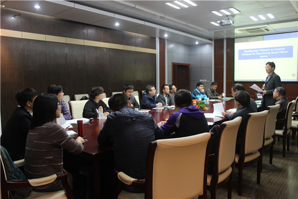 本次會議圍繞復分析、泛函分析、微分方程等研究方向的熱點問題和重要問題,作了12場學術報告。會上,嘉興學院徐憲民教授作了題為《Beurling type theorem for a class of reproducing kernel Hilbert spaces》的邀請報告,我校褚玉明教授、歐陽耀教授、鄭敏玲副教授等就各自的研究成果作了專題報告。與會人員還就地方高校數學學科建設、人才培養等議題開展了充分的研討。此次會議有力的推動了兩校數學學科的交流與合作,促進了我校數學學科的發展。