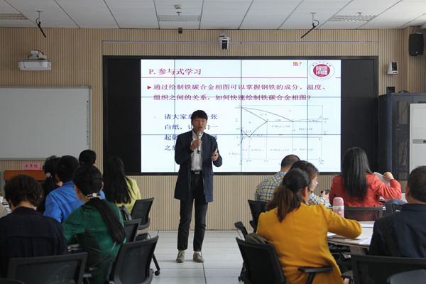 第二天,每位教師自選1個知識點,根據BOPPPS模組進行教學設計,并分組操練,通過演練、同儕互評、王教授點評、完善教學設計等環節進行內化吸收。分組演練結束后,王教授再集中所有參訓者進行反饋總結,幫助指導提高。工學院徐云杰老師、社發學院王峰老師根據BOPPPS模組設計的課堂教學,獲得了王教授及參訓老師的一致好評。