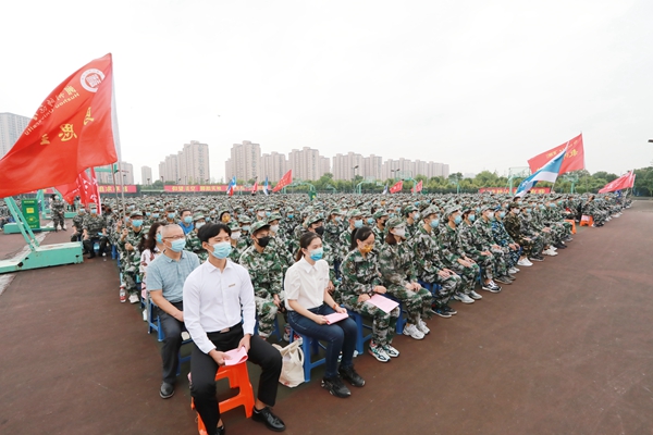 2021級新生開學典禮暨軍訓動員大會在齊唱校歌中落下帷幕。