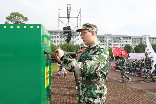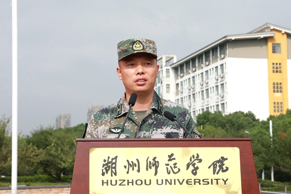 劉飛代表承訓部隊講話。他指出,軍訓期間,同學們要按照軍人的標準嚴格要求自己,繼承和發(fā)揚不怕苦、不怕累的精神,圓滿完成各項任務。同時,他希望新生通過軍訓能夠強化紀律意識,磨練意志品質(zhì),增強國防觀念;尊敬師長,關心集體,關愛他人,增強集體榮譽感;認真總結(jié),有所感悟,培養(yǎng)優(yōu)秀品質(zhì),使之成為將來生活、學習和工作中的寶貴財富。