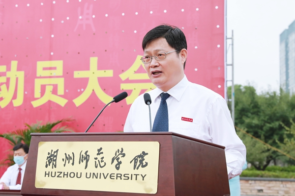 典禮上,蔣云良作了題為《慕鴻鵠以高翔 育英才以致遠》的講話。他首先向2021級新生的到來表示熱烈歡迎。他表示,湖州是一座歷史文化名城,是習近平總書記“綠水青山就是金山銀山”理念誕生地,希望新生用腳步去丈量這片土地、用心去閱讀這座城市。他和同學們探討了在當今一個大時代背景下,國家、社會、集體和個人的關系,并從三個方面提出要求:一是要明確個人和國家、個人和社會、個人和集體的關系,培養(yǎng)一種家國情懷;二是要重視第一課堂學習,加強第二課堂和第三課堂鍛煉,塑造新時代復合型人才;三是要融入新時代,有效規(guī)劃人生,實現(xiàn)自己的青春夢想。他相信,美麗的校園一定會因同學們而更加精彩,同學們奮進的青春印記也一定會為學校所銘刻。
