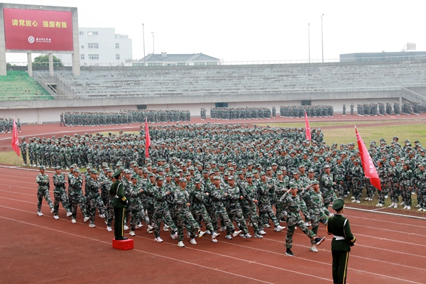 9月28日上午,我校2021級(jí)新生軍訓(xùn)匯報(bào)表演暨總結(jié)表彰大會(huì)在學(xué)校風(fēng)雨操場(chǎng)隆重舉行。校黨委書記金佩華,校長(zhǎng)蔣云良,校黨委副書記丁敢真,副校長(zhǎng)舒志定、潘音,黨委委員、辦公室主任勞士健,中國(guó)人民解放軍某部隊(duì)軍官、軍訓(xùn)團(tuán)團(tuán)長(zhǎng)劉飛出席。學(xué)校相關(guān)部門及各二級(jí)學(xué)院負(fù)責(zé)人、教師代表、承訓(xùn)部隊(duì)教官和2800余名2021級(jí)全體受訓(xùn)新生參加了匯報(bào)演出。大會(huì)由丁敢真主持。