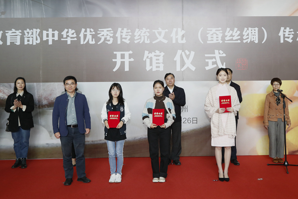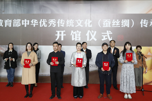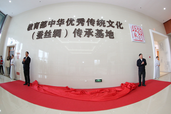 儀式上,金佩華和陳永華共同為教育部中華優(yōu)秀傳統(tǒng)文化(蠶絲綢)傳承基地揭幕。