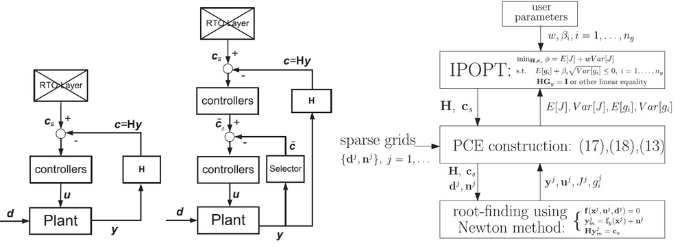 自優化控制是一種以選擇被控變量為手段的控制結構設計和實時優化方法,合理的被控變量能實現系統在不確定條件下自尋優,有效提升流程工業的經濟效益。研究表明,以系統輸出的函數(虛擬變量)為被控變量具有更大潛力提升優化效果,如何求解最優變量組合是該研究方向的關鍵問題。近20年,該問題一直沿襲先對相關量進行局域泰勒展開,再簡化得到關鍵量的解析表達,最后求解出組合矩陣的研究思路,導致性能具有很大局限性。該最新成果繞開現有研究模式,從原始非線性函數出發,提出一種基于混沌多項式的全局自優化控制求解新框架,將優化性能提升至操作空間全域。方法引入混沌多項式及稀疏采樣等技術手段降低計算負荷、提升優化效率,保證了大規模問題的計算可行性。通過增加配置點/采樣點,使結果能逼近真正的全局最優解,是目前已公開文獻中唯一能達成該效果的自優化控制方法。文章還針對化工過程普遍存在的可變積極約束問題提出了機會約束的解決方案。