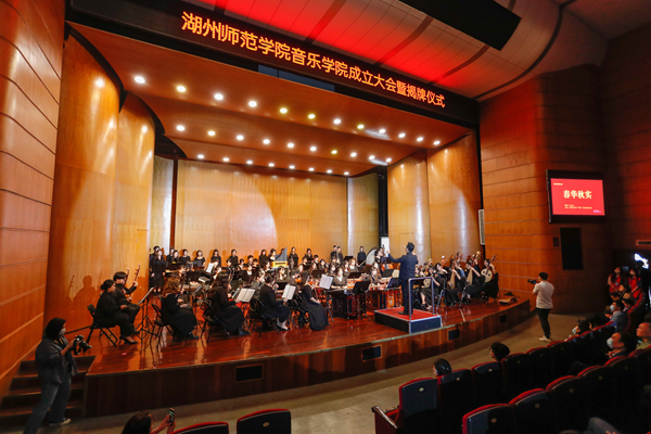校黨委書記金佩華向音樂學院的成立表示熱烈祝賀。金佩華表示,成立音樂學院是新時代湖州師范學院高質量跨越式發展進程中具有重大意義的好事和喜事。創建音樂學院不僅是學校新時代內涵式發展的自身需要,也是助力建設綠色低碳共富社會主義現代化新湖州,聚力服務浙江高質量發展建設共同富裕示范區,合力打造在長三角地區特色鮮明、優勢突出,國內具有一定影響、一定水平的音樂戲劇新高地。金佩華就音樂學院今后的工作提三點要求:一是堅持立德樹人,努力成為音樂人才培養的“新陣地”;二是堅持黨建引領,著力營造干事創業的“新氣象”;三是要堅持開放辦院,奮力打造校地合作的“新名片”。