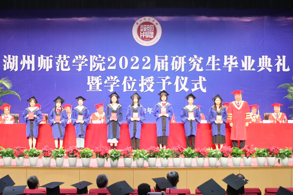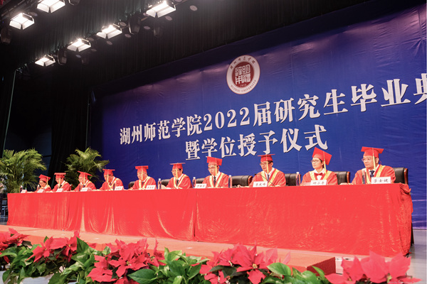 校黨委副書記丁敢真宣讀2022屆碩士研究生畢業(yè)名單和2022屆浙江省優(yōu)秀畢業(yè)生名單,校領(lǐng)導(dǎo)班子為2022屆研究生頒發(fā)畢業(yè)證書。