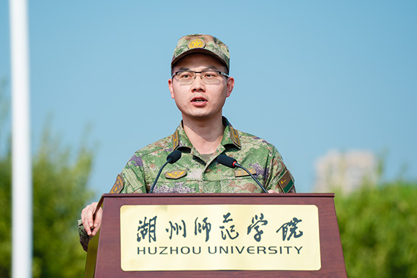 龔國武代表承訓部隊講話。他指出,軍訓是人生中不可多得的經歷,軍訓期間,同學們要強化紀律意識,磨練意志品質,圓滿完成各項任務。同時,他希望新生們吃得起苦,擺正心態,強化身心素質;互相尊重,珍惜相聚緣分,共同學習、共同鍛煉、共同進步;經得起事,要有淡然面對勝境、沉穩走出逆境、勇敢戰勝困境的能力和素養。