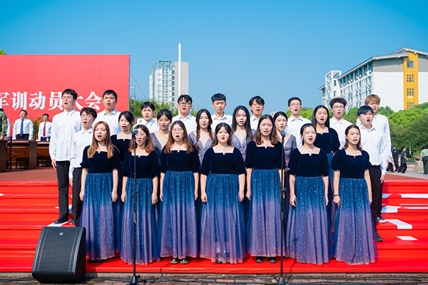 2022級新生開學典禮暨軍訓動員大會在齊唱校歌中落下帷幕。