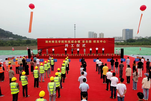 9月28日上午,學校科技綜合樓、安吉園、校友中心項目開工儀式在東校區項目現場舉行。副市長阮葉萍,安吉縣委常委、常務副縣長沈霞俊,市教育局黨委委員、副局長朱建偉,校黨委書記金佩華,黨委副書記陳永華,副校長潘音,黨委委員、宣傳部長杜寧,黨委委員、黨校辦主任勞士健,項目總承包單位浙江華昌建設有限公司董事長費武榮,設計單位中國聯合工程公司第二建筑設計研究院項目負責人周煜,全過程咨詢單位浙江東南建設管理有限公司董事長王偉東,跟蹤審計單位建銀工程咨詢有限責任公司湖州分公司總經理吳浪霞等出席,學校相關職能部門、二級學院負責人、師生代表以及各參建單位項目負責人和建設者們一同參加開工儀式。儀式由潘音主持。