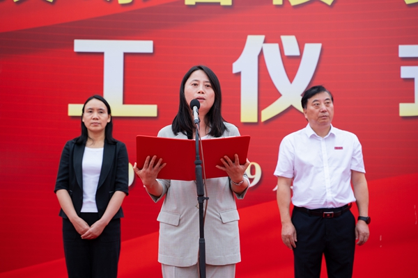 阮葉萍宣布項目正式開工。伴隨禮炮齊鳴,旌旗飛揚,出席儀式的各位領導共同為項目奠基、合影。