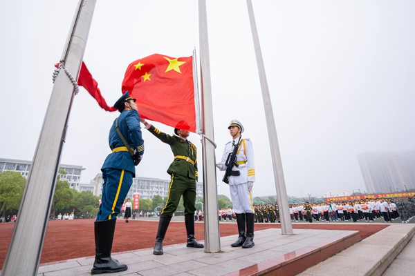 宣傳部、學工部開展“慶祖國73華誕,青春獻禮二十大”升旗儀式。近千名師生齊聚長興廣場,在嘹亮的口號聲中,國旗護衛隊邁著矯健的步伐,莊嚴走向旗臺。蔚藍天空下,伴隨著雄壯的《義勇軍進行曲》,鮮艷的五星紅旗冉冉升起。全體人員精神飽滿、肅然而立,向五星紅旗行注目禮,以此表達對祖國的赤誠之心和美好祝福。人文學院學生代表在儀式上進行了勵志演講、詩朗誦,全體師生齊唱《我和我的祖國》,向祖國深情告白。
