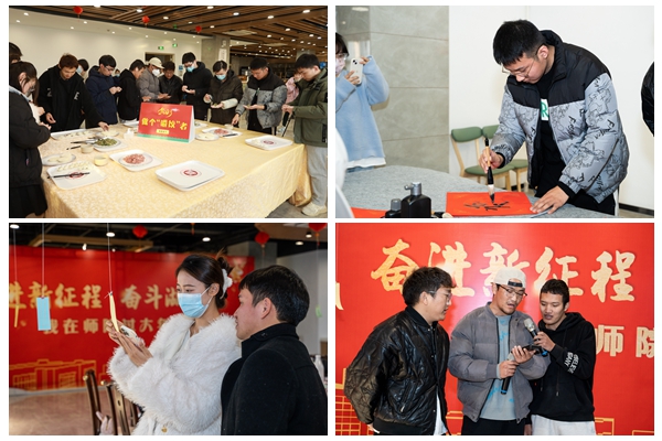 今年春節(jié),我校共有14名同學(xué)因科研、實習(xí)等原因選擇留校過年,沒有回到親人身邊,但他們在學(xué)校也感受到了濃濃的過年氛圍。學(xué)校為留校學(xué)生精心準備了豐盛的年夜飯,并為大家送上了暖心大禮包和象征如意安康的福字。活動現(xiàn)場還重點凸顯國潮元素,組織師生共寫兔福,齊包餃子,共猜燈謎。學(xué)校還特意錄制了師長、親人的祝福視頻,貼心的話語、真誠的祝福讓大家感受到了學(xué)校的用心。