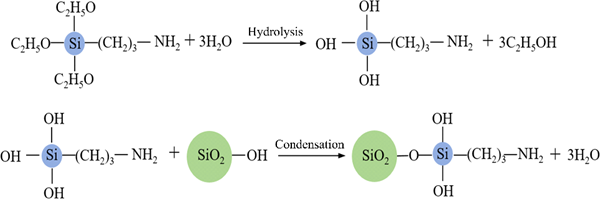 受生物體自修復特性的啟發,將智能自修復概念引入到聚合物材料中,材料中自修復因子可形成智能觸發—響應—修復機制,快速實現自愈合,從而延長涂層的使用壽命。然而,由于自修復因子(TO@CA)作為填料形式加入,對硅橡膠基體(SR)的力學性能、耐腐蝕性能及自修復性能產生重要影響。為此,提出通過填充無機納米粒子SiO2對SR進行增強改性,以改善TO@CA與SR間的界面相容性及分散性,最大限度的抵消其對SR力學性能的影響,提高其耐腐蝕性及自修復性。首先,選用偶聯劑KH550對納米SiO2粒子表面進行化學改性,水解后生成的硅醇基與納米SiO2粒子表面的羥基發生縮合反應,形成共價鍵-Si-O-Si-;同時非水解基團與SR通過H鍵作用相連。氨基化的納米SiO2粒子表面由親水性轉為疏水性,極大地改善了SiO2與SR的相容性及分散性。其次,改性后的納米SiO2粒子與SR形成了三維連通網絡,與硅鏈網絡耦合形成了雙網絡結構,當有外力作用時,SiO2-SR及SiO2-SiO2之間的可逆鍵合可有效地耗散機械能量,從而提高SR的力學性能。兩者的協同作用,可實現對涂層材料的自修復和力學性能的提高,從而顯著提高涂層對基底材料的耐腐蝕防護性能。