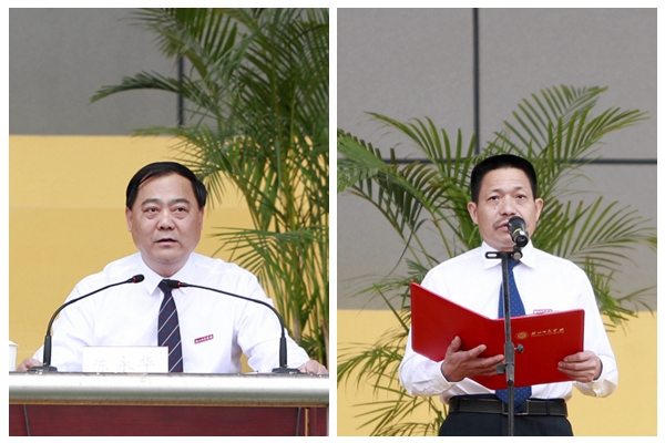 裁判員代表、體育學院教師金志鴻,運動員代表、工學院學生邱俊鑫分別鄭重宣誓。