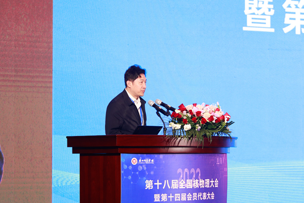 陳東風宣讀中國核學會賀信。賀信指出,全國核學會核物理分會成立以來,加強了核物理研究在我國國民經濟方面的應用研究,提升了我國核物理的研究能力與水平,團結凝聚了核物理研究領域的優秀人才,壯大了中國核學會的實力和影響力,為我國核事業建設作出了重要貢獻。