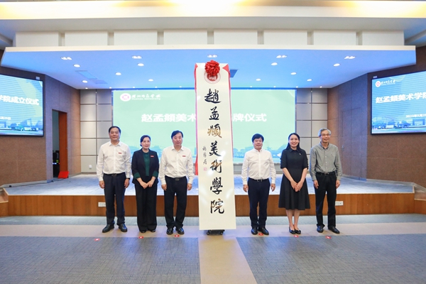 徐仲儀、阮葉萍、趙雁君、金佩華、許慧霞、陳永華共同為“趙孟頫美術(shù)學(xué)院”揭牌。