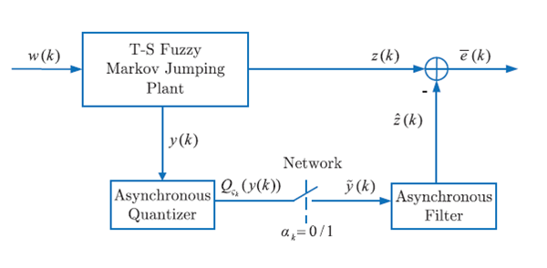 Markov跳變系統(tǒng)作為一類特殊的混雜系統(tǒng),因其簡單的數(shù)學描述形式和對實際系統(tǒng)強大的建模能力得到了學術(shù)界和工業(yè)界的青睞,在電力系統(tǒng)、航空航天系統(tǒng)等眾多工程領(lǐng)域得到了廣泛應用。在研究Markov跳變系統(tǒng)時,基于隱Markov模型考慮異步的綜合方法可以有效克服實際系統(tǒng)中模態(tài)難以精確獲得的困難,但同時又充分利用了可用的模態(tài)信息,可有效降低結(jié)論的保守性。該文章研究了一類具有丟包的網(wǎng)絡(luò)化Takagi-Sugeno模糊Markov跳變系統(tǒng)的耗散異步濾波問題。系統(tǒng)測量采用對數(shù)量化器進行量化,并引入一種新的伯努利丟包模型來處理量化器至濾波器之間的丟包現(xiàn)象。濾波器、量化器和系統(tǒng)之間均是異步的,異步關(guān)系分別由兩個隱Markov模型描述。通過采用模態(tài)和模糊規(guī)則依賴的Lyapunov函數(shù)方法和適當?shù)木仃嚥坏仁阶儞Q技術(shù),得到了可使濾波誤差系統(tǒng)隨機均方穩(wěn)定且具有一定耗散性能的異步濾波器設(shè)計方法。與現(xiàn)有方法相比,文章中所提出的設(shè)計方法可有效提高系統(tǒng)的濾波性能。