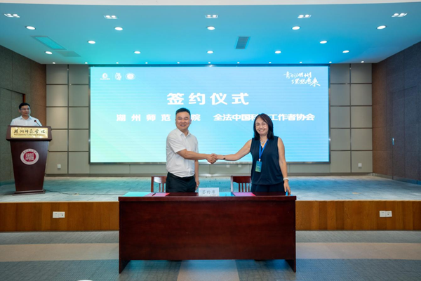 儀式上,湖州師范學院、湖州市人才產業集團分別與全法中國科技工作者協會簽訂合作框架協議,并舉行了“春暉計劃”之“才聚湖州”吳興行暨湖州師范學院“3+1”平臺法國高層次人才論壇啟動儀式。