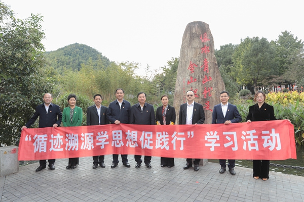 10月20日下午,校黨委書記金佩華、校長許慧霞帶領學校黨委理論學習中心組全體成員走進安吉余村,沿著習近平總書記的足跡,開展“循跡溯源學思想促踐行”研學活動,學習體悟習近平新時代中國特色社會主義思想在浙江的萌發與實踐,通過現場學習進一步感受思想偉力、汲取真理力量。安吉縣委副書記、縣長寧云陪同。