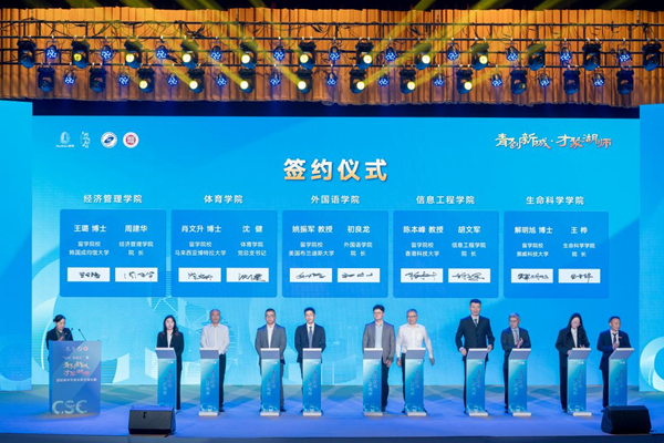 開幕式現(xiàn)場,10名優(yōu)秀青年英才進行了簽約,加盟湖州師范學院,留在湖州創(chuàng)新創(chuàng)業(yè)。