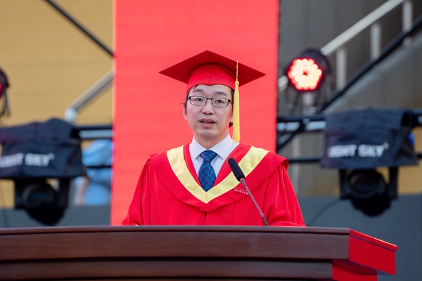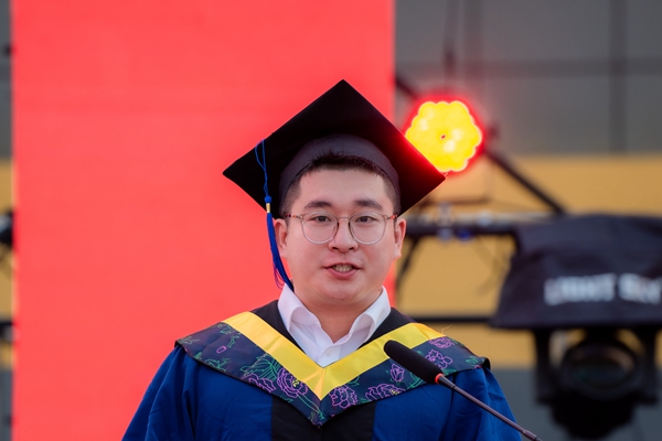 來(lái)自工學(xué)院、考取蘭州大學(xué)博士研究生的碩士畢業(yè)生代表馮鄭業(yè)表示,感謝學(xué)校的培養(yǎng),讓自己實(shí)現(xiàn)了學(xué)術(shù)夢(mèng)想。在湖師求學(xué)的時(shí)光,春風(fēng)化雨,砥礪前行,未來(lái)將心懷感恩,追求卓越,帶著師長(zhǎng)們的殷殷囑托,篤定前行。希望大家能夠永懷心底的微光,乘風(fēng)破浪,成就各自的輝煌。