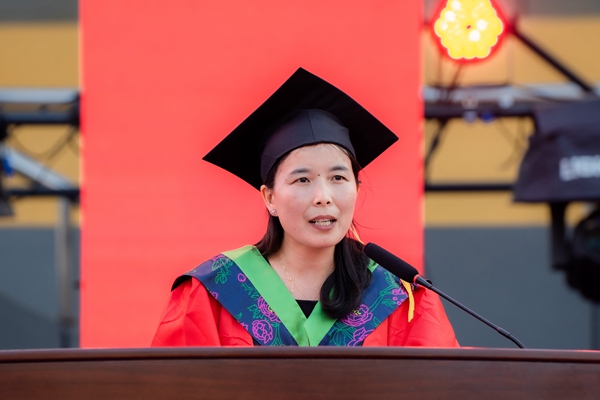 來(lái)自教師教育學(xué)院的畢業(yè)班班主任代表馬利云副教授表示,在師生相處的珍貴片段中,自己看到了同學(xué)們的進(jìn)步與成長(zhǎng),看到同學(xué)們學(xué)會(huì)了尊重、寬容與友愛(ài),看到了同學(xué)們永不言棄、奮勇?tīng)?zhēng)先的進(jìn)取精神。她分享了有愛(ài)、有恒、有度三個(gè)關(guān)鍵詞,鼓勵(lì)同學(xué)們?cè)谛碌膷徫簧习l(fā)光發(fā)熱,永不言棄、奮勇?tīng)?zhēng)先。