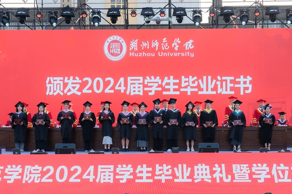 舒志定宣讀了2024屆畢業(yè)生和省優(yōu)秀畢業(yè)生名單,校黨政領(lǐng)導(dǎo)班子為畢業(yè)生代表頒發(fā)了畢業(yè)證書(shū)。