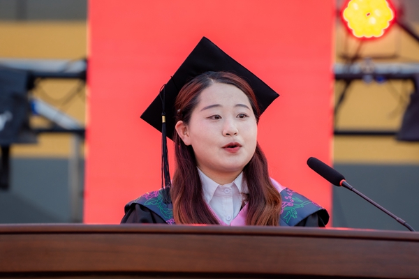 來(lái)自人文學(xué)院、考取首都師范大學(xué)碩士研究生的本科畢業(yè)生代表章柳妮表示,湖州師院是學(xué)子們自由探索的平臺(tái),她在這里獲得了老師和同學(xué)們的很多鼓勵(lì)和幫助。未來(lái)無(wú)論自己身處何方,都將恪守“明體達(dá)用”的校訓(xùn),做矢志報(bào)國(guó)的愛(ài)國(guó)者,做博學(xué)明理的學(xué)習(xí)者,做務(wù)實(shí)勤勉的實(shí)干者。