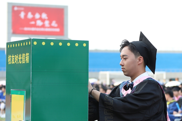 學(xué)生代表們上臺(tái)分享了自己四年前投入“時(shí)光信箱”的心愿單。典禮上,畢業(yè)生們又紛紛將校友心愿單投遞到校友時(shí)光信箱中,許下對(duì)自己未來(lái)生活的期盼與愿望。