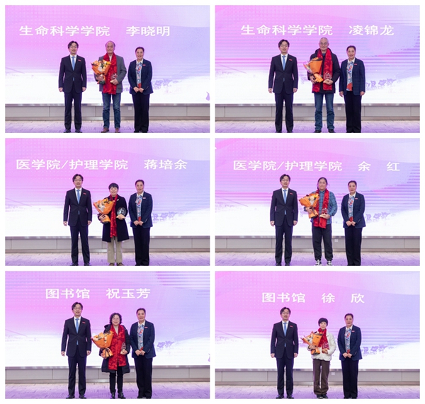 會場上,屏幕滾動播放著榮休教職工從教生涯的影像和對學校的祝愿。今年我校退休教職工共有40位,是學校成立以來退休教職工最多的一年。他們來自17個二級單位,平均工作年限超過36年,其中最長的達43年。他們踐行湖師精神,教書育人、無私奉獻,親歷并推動了學校事業發展,為學校“創大拼‘博’”作出了重要貢獻,是學校永遠的驕傲和寶貴的財富。