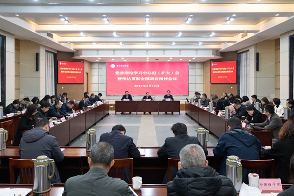 3月17日下午,湖州師范學院黨委理論學習中心組召開學習(擴大)會,傳達學習全國兩會精神。中心組全體成員出席,二級黨組織書記,各職能部門、直屬單位負責人,各二級學院院長,附屬第一醫院院長參加。會議由校黨委書記許慧霞主持。