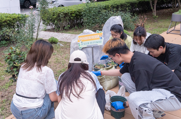 在充滿生機的生命花園,大家分工協(xié)作,清理雜草、修剪枯枝、撿拾垃圾,為綠植澆水施肥。在畢業(yè)生們的精心打理下,花園重現(xiàn)盎然生機。