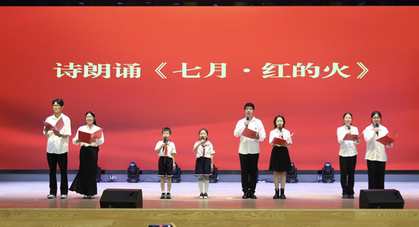 活動中,少先隊員們合唱《我們是共產主義的接班人》;濱湖高中師生獻唱《唱支山歌給黨聽》;大中小學生代表聯袂獻上詩朗誦《七月 紅的火》,激昂的文字在抑揚頓挫中勾勒百年征程,將活動推向高潮。紅色旋律與青春誓言在會場共振,化作青春擔當的時代回響,讓信仰的火種在不同學段的心靈間燎原傳遞。
