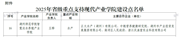 近日,浙江省教育廳和浙江省經濟和信息化廳聯合發布《關于公布2025年省級重點支持現代產業學院建設點名單的通知》,我校王樺教授牽頭申報的“智慧淡水養殖產業學院”成功獲批。這是繼“先進裝備智能制造產業學院”之后,我校第二個獲省級重點立項支持的現代產業學院,標志著我校在產教融合領域再上新臺階。