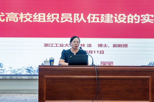 啟動會后,舉行了第一期“明達先鋒”黨建論壇,浙江工業(yè)大學(xué)黨委組織部副部長林潔應(yīng)邀作《新時代高校組織員隊伍建設(shè)的實踐與思考》專題報告。她深入闡明加強高校組織員隊伍建設(shè)的重大意義,分析了當(dāng)前面臨的機遇與挑戰(zhàn),提出了構(gòu)建“選育管用”全鏈條建設(shè)體系的對策路徑,激勵全體組織員努力成為“政治忠誠、專業(yè)過硬、擔(dān)當(dāng)盡責(zé)”的精兵,以隊伍質(zhì)量躍升共同鑄就高校黨建的“浙江樣板”。