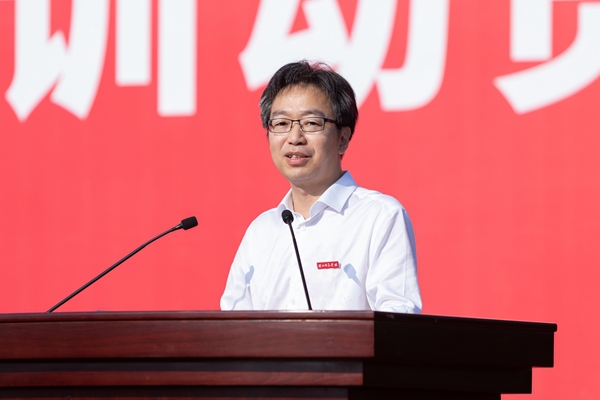 典禮上,盛況作了題為《在湖師,活出青春的模樣》的講話。他表示,湖州師范學(xué)院有優(yōu)秀的教師方陣、完善的育人設(shè)施、并肩前行的伙伴,同學(xué)們會在課堂的討論中讀懂“明體達(dá)用”的校訓(xùn),在實驗室、圖書館的徹夜燈火里踐行“艱苦奮斗,自強不息,包容求新,博雅篤行”的湖師精神。他希望2025級的同學(xué)們扛起強國興邦的時代重任,把個人理想融入國家發(fā)展的洪流之中,努力培育胸懷天下、矢志報國的情懷和砥礪修身、正直坦蕩的品格,讓人生的價值在強國征程中升華,用不懈奮斗為民族復(fù)興的豐碑添磚加瓦;涵養(yǎng)包容求新的人生境界,努力具備放眼世界、面向未來的視野和主動探索、勇于創(chuàng)新的素質(zhì),讓青春的胸懷在成就事業(yè)、服務(wù)人民的征程中愈發(fā)遼闊、愈發(fā)寬廣。他希望同學(xué)們積極擁抱智能時代的星辰大海,掌握學(xué)以致用、科學(xué)應(yīng)變的能力和精深廣博、交叉復(fù)合的知識,讓青春的臂膀在探索中長出力量,成為劈開迷霧的“創(chuàng)新之刃”。盛況表示,青春當(dāng)致遠(yuǎn),拼搏啟新航。希望同學(xué)們始終與祖國同頻,與時代共振,向未來前進(jìn),在強國建設(shè)的征程中書寫青春篇章,在民族復(fù)興的偉業(yè)中貢獻(xiàn)青春力量。