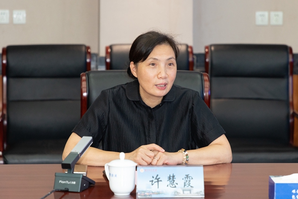 許慧霞代表學校對白育庭一行來校調研表示歡迎,并介紹了學校辦學歷程、學科布局、人才培養、科學研究、服務地方等方面情況。她表示,兩校辦學類型、辦學定位相近,希望雙方進一步加強溝通、互學互鑒,共同探索地方高校服務區域發展、推動教育科技人才一體化的新路徑。