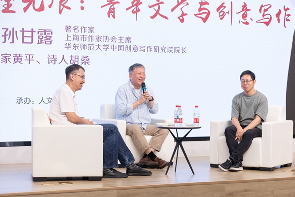 9月19日下午,著名作家孫甘露做客我校胡瑗大講堂,與華東師范大學中文系副主任、中國創意寫作研究院副院長黃平,同濟大學文藝學與比較文學研究所副所長、詩學研究中心副主任胡桑對談,與我校師生共話文學感悟與創意寫作。講座由校黨委委員、宣傳部部長朱小芳主持。