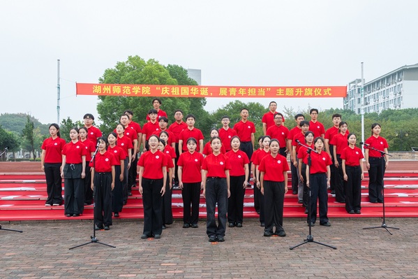 儀式在全體師生齊聲高唱《歌唱祖國》的激昂旋律中圓滿落幕,以深情歌聲抒發對祖國的熱愛,以實際行動踐行“明體達用”校訓,為建設高水平湖州師范大學貢獻青春力量的堅定決心。
