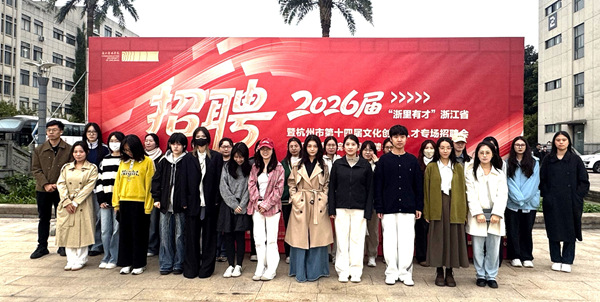 10月21日,人文學院組織相關專業共38名畢業生前往杭州,參加浙江省2026屆畢業生暨杭州市第十四屆文化創意人才專場招聘會。人文學院就業輔導員盧昱全程參與,為學生提供現場指導和幫助。