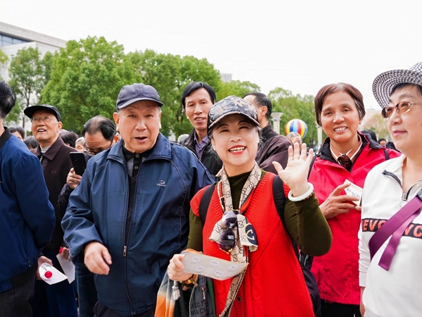 活動現(xiàn)場,退休教工們精神矍鑠,笑語盈盈。在體育學(xué)院負(fù)責(zé)人和教師的專業(yè)帶領(lǐng)下,大家活動筋骨,認(rèn)真熱身。從校訓(xùn)廣場整裝出發(fā),沿吳興園、圖書館、潯園、安吉園、德清湖、校友中心等校園標(biāo)志性景點(diǎn)漫步暢談。大家一路賞景、一路交流,在輕松愉快的氛圍中重溫昔日奮斗足跡,切身感受學(xué)校的發(fā)展變化。