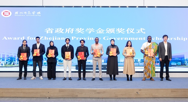 典禮現(xiàn)場舉行了浙江省政府來華留學(xué)生獎學(xué)金頒獎儀式。校領(lǐng)導(dǎo)為2024-2025學(xué)年獲獎的18名優(yōu)秀國際學(xué)生頒獎,表彰他們在學(xué)術(shù)研究、跨文化交流等方面的突出表現(xiàn)。