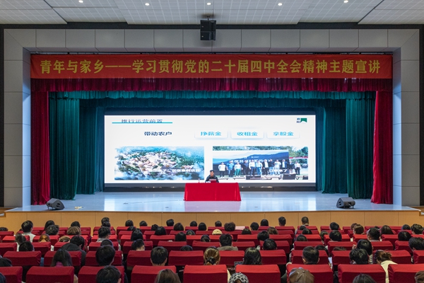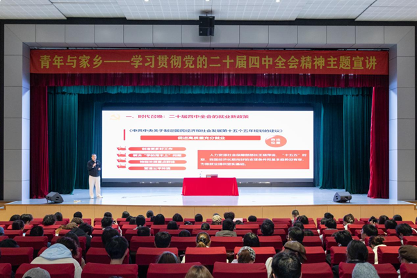 馬克思主義學(xué)院教師陳晨以《時代召喚與現(xiàn)實圖景——四中全會精神引領(lǐng)大學(xué)生就業(yè)新征程》為題,作黨的二十屆四中全會精神專題宣講,并發(fā)布了由校團委與馬克思主義學(xué)院共同策劃的實踐課題。課題聚焦“青年與家鄉(xiāng)”,圍繞“產(chǎn)業(yè)振興與青年機遇”“人才振興與青年角色”“文化振興與青年傳承”“生態(tài)振興與青年行動”“組織振興與青年參與”五大方向,鼓勵學(xué)生在返鄉(xiāng)實踐中發(fā)現(xiàn)問題、分析問題,運用專業(yè)知識提出解決方案,引導(dǎo)學(xué)生在服務(wù)家鄉(xiāng)的實踐中深化對黨的創(chuàng)新理論的理解,實現(xiàn)知行合一。