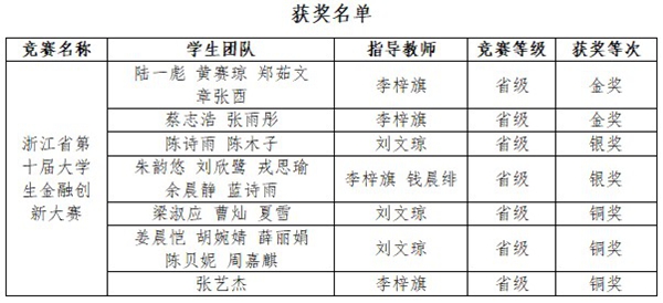 我校學(xué)子在第十屆浙江省大學(xué)生金融創(chuàng)新大賽中斬獲佳績(圖)