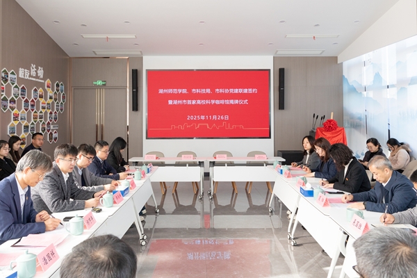 為深化校地融合,推動科技協同創新,11月26日,我校與湖州市科技局、市科協聯合舉辦黨建聯建簽約暨湖州市首家高校“科學咖啡館”揭牌儀式。我校副校長李慶峰、湖州市科技局副局長夏陽、湖州市科協副主席汪方華出席。市科技局、市科協相關處室負責人及黨員代表,我校機關黨委、科技處、社會合作與發展聯絡辦公室等部門負責人與黨員代表共同參加。